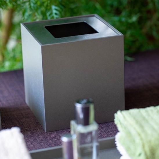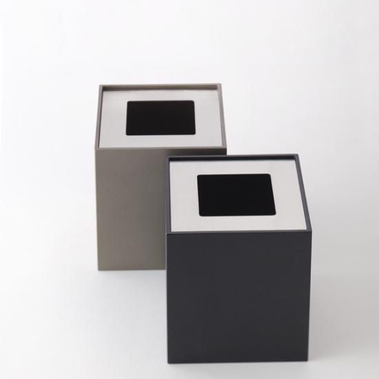 汚れがつき難いナシ地仕上げの本体、ステンレスの蓋を合わせたジオクラフトオリジナルのミニダストボックスです。蓋は鏡面とヘアラインのリバーシブル仕上げでお好きな面をお選びいただけます。
