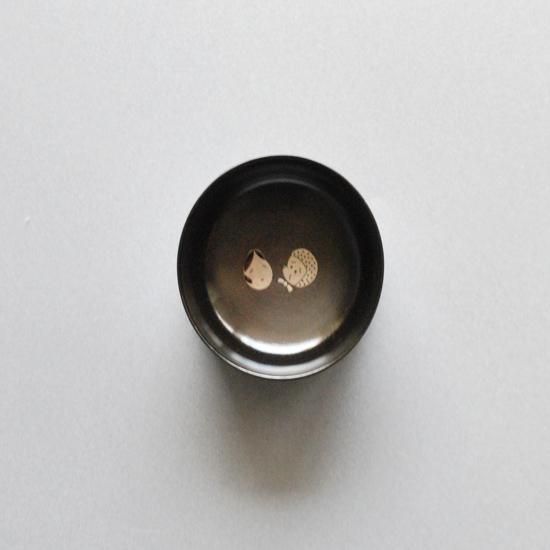 ぐい呑み 黒拭漆 家守絵