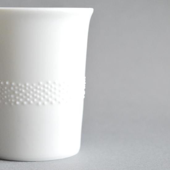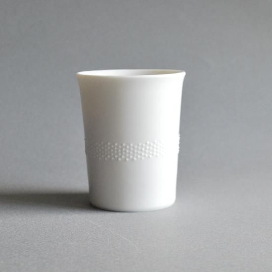白磁のショットハイはセンターにイッチン技法で小さな点を配しています。