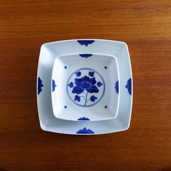 スクエアプレート(S)12cm角 染付伊万里牡丹 - ジオクラフトオンラインショップ