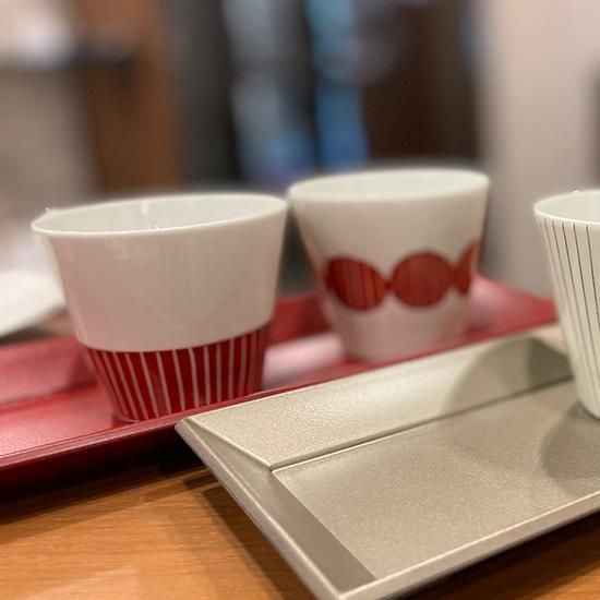 波佐見焼のモダンな赤絵そば猪口です。